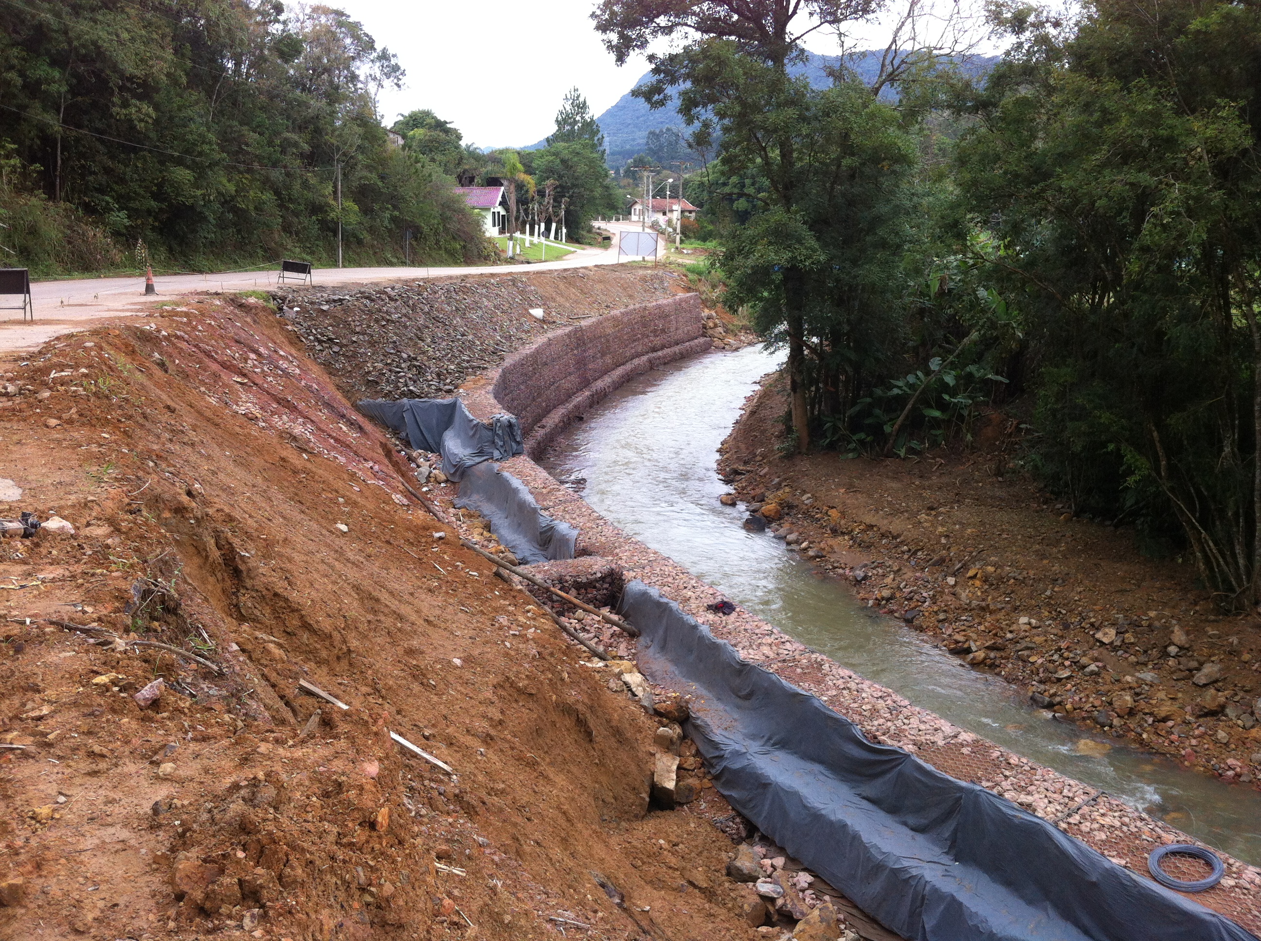 Tanto o gabião, quanto o enrocamento, são muros de arrimo, executados com ou sem reforço de solos, utilizados para contenção ou estabilização de taludes e canais contra efeitos erosivos. O gabião é uma cubo feito com malha de fio de aço e preenchido com pedra. Tem grande durabilidade, é drenante e flexível. Já o enrocamento é executado com pedras detonadas arrumadas, porém necessita maior área pois trabalha com a gravidade.